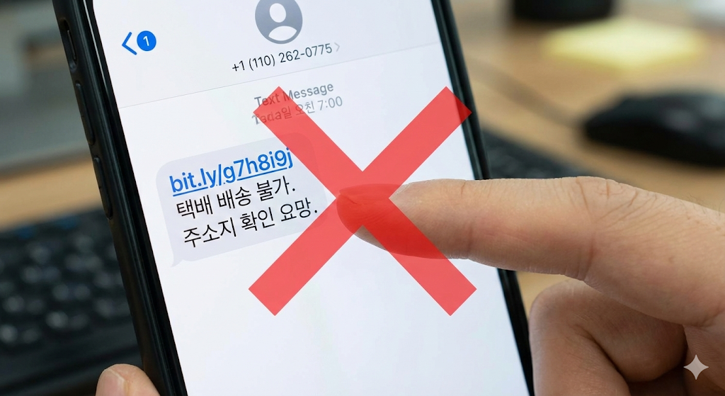 - 불분명한 링크(URL) 클릭 금지: 택배 조회, 과태료 고지서 등 문자 내 링크는 악성 코드 감염의 주범입니다.