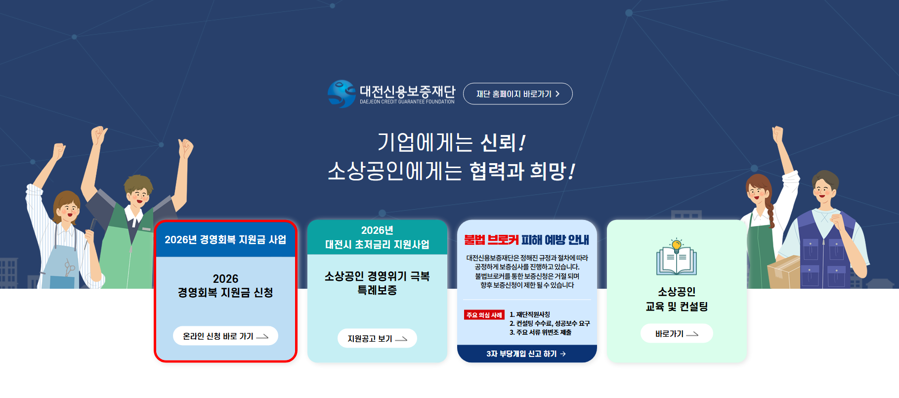 대전광역시와 대전신용보증재단이 공동 운영하는 지원사업입니다.