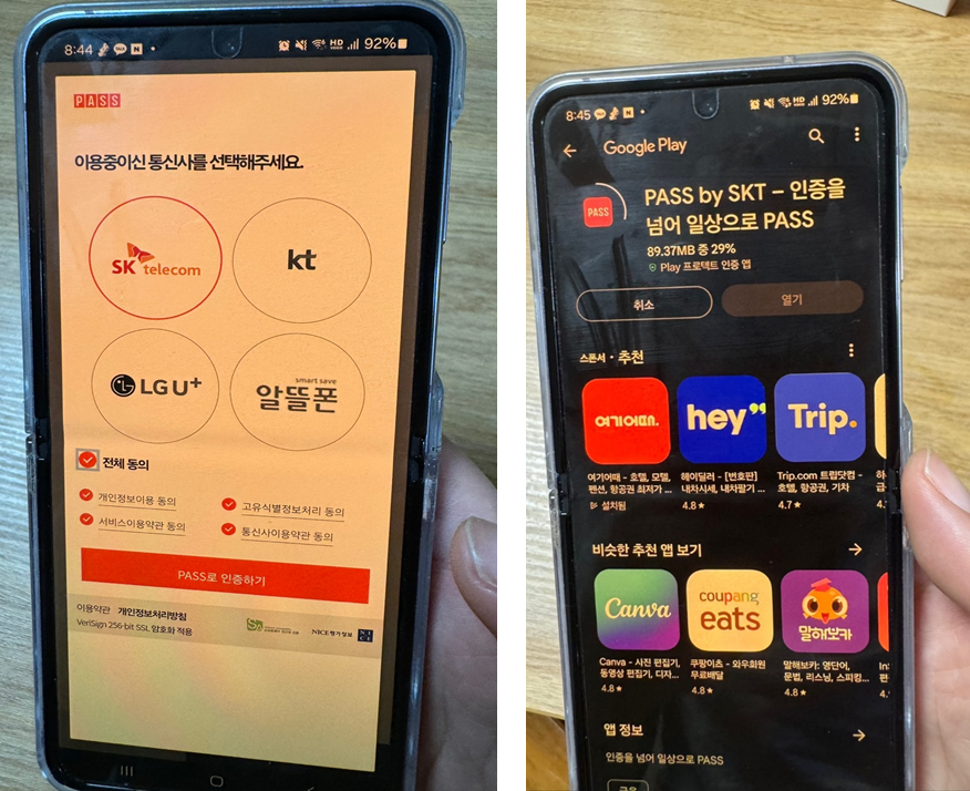 (문자 인증은 안되더라구요~ PASS 앱 설치하셔서 진행하셔야 합니다)