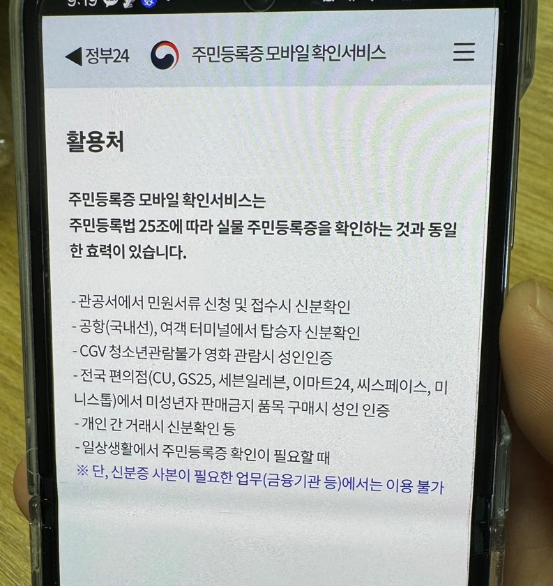 다만 안타깝게도 금융기관 등에서 신분증 사본이 필요한 업무를 볼때는 이용하는 것이 불가하다고 하니, 이런 경우에는 실물을 꼭 챙겨가는 것을 잊지 않아야겠습니다.