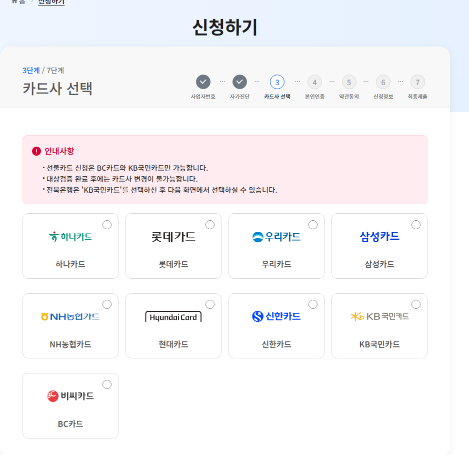 ✔ 신청 시 체크카드 카드사 선택